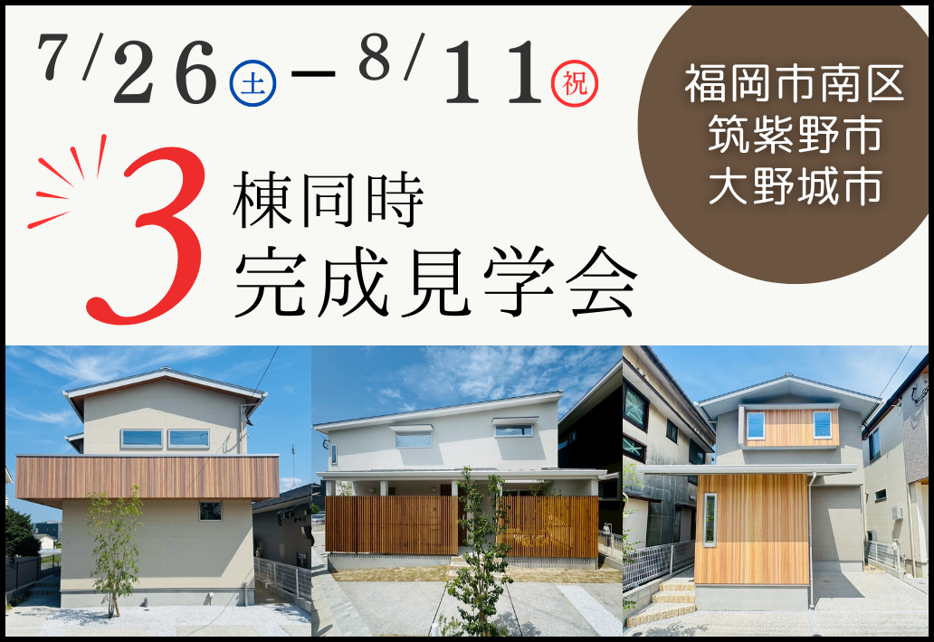| 2025.11.06 | NEW | 11月22日(土)・23日(日)【糟屋郡新宮町】建築士同席!秋🍁の2棟同時見学会 |