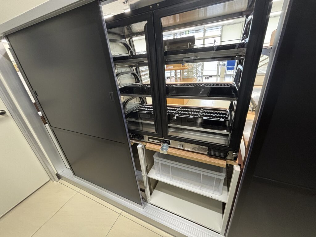 さらに!! バックヤード側から直接揚げたての商品を陳列できるんです!!