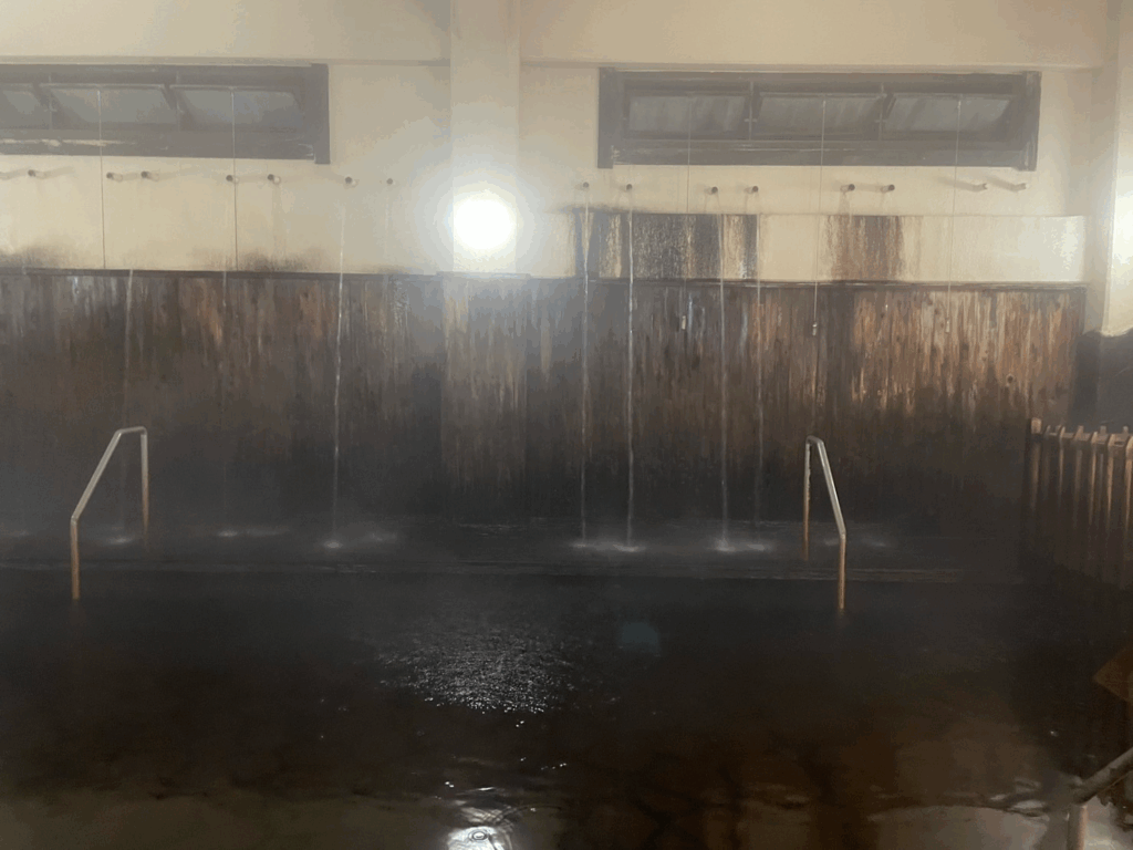 うたせ大浴場は高さ約3メートルの高さから湯が流れ落ちる日本有数のうたせ湯です。肩や腰に当てるとマッサージ効果で筋肉の疲れを癒し、アルカリ性単純温泉の優しい湯が体を芯から温めてくれます。