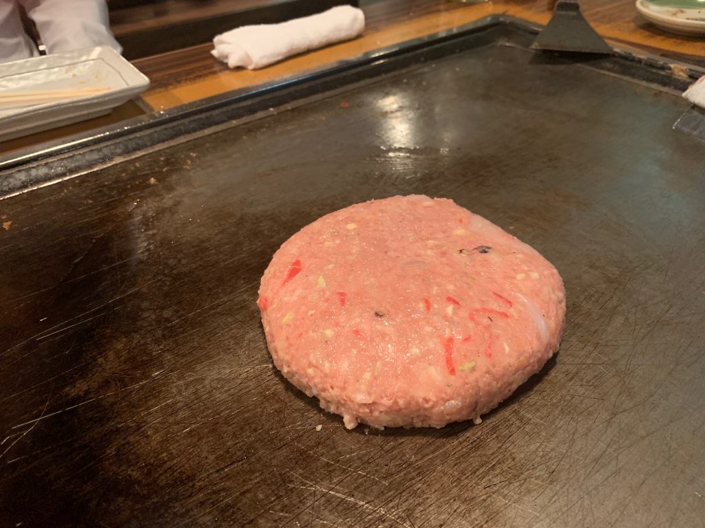 店員さんが何やらハンバーグのようなものを焼き始めてくださいました。