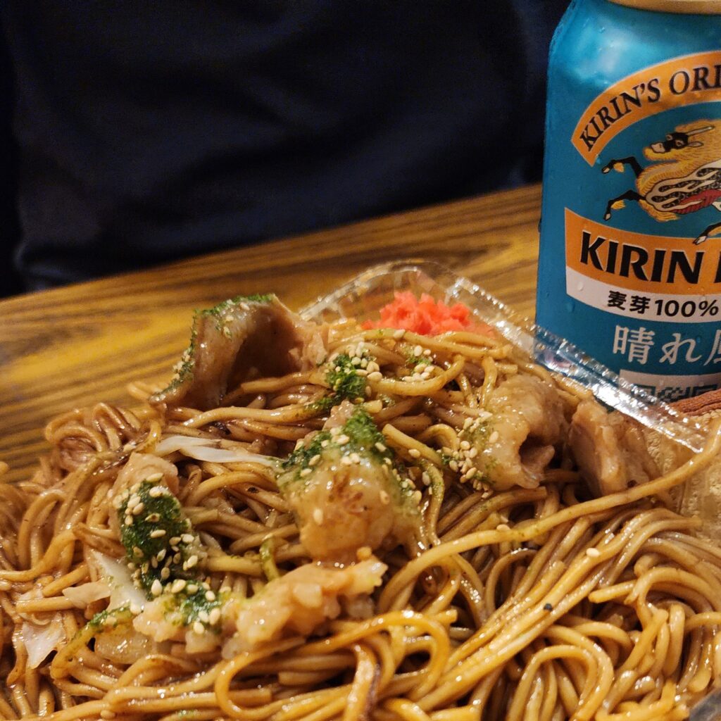屋台ならではの焼きそば、たこ焼き、はしまきなどが好きで、この他にも色々と食べて