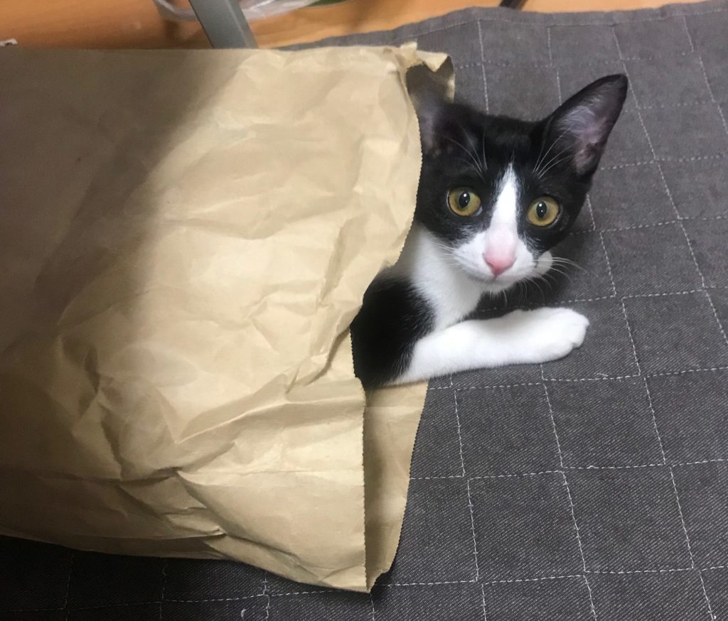 相変わらず、袋や段ボールが大好きでずっと遊んでます。