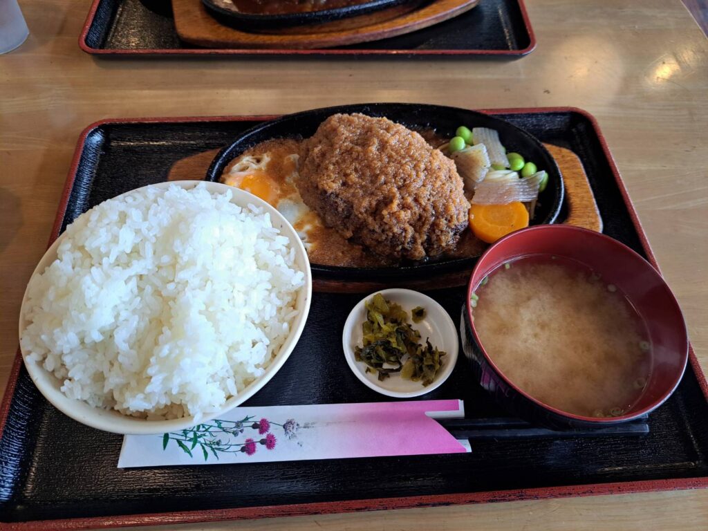 今回は、健康診断の結果で保健士さんから食事制限を指導されていましたので、少なめにしてハンバーク定食を頼みましたが、ボリュームたっぷりの量でした。