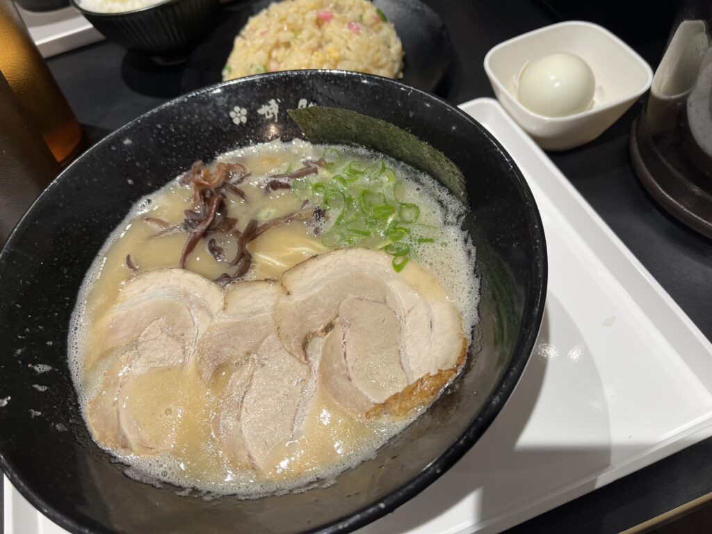 濃厚とんこつでチャーシューが3枚ものっていて美味しかったです!