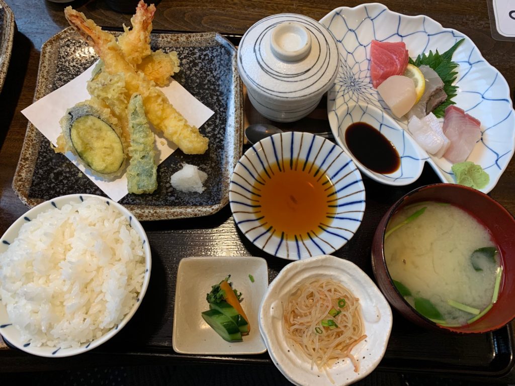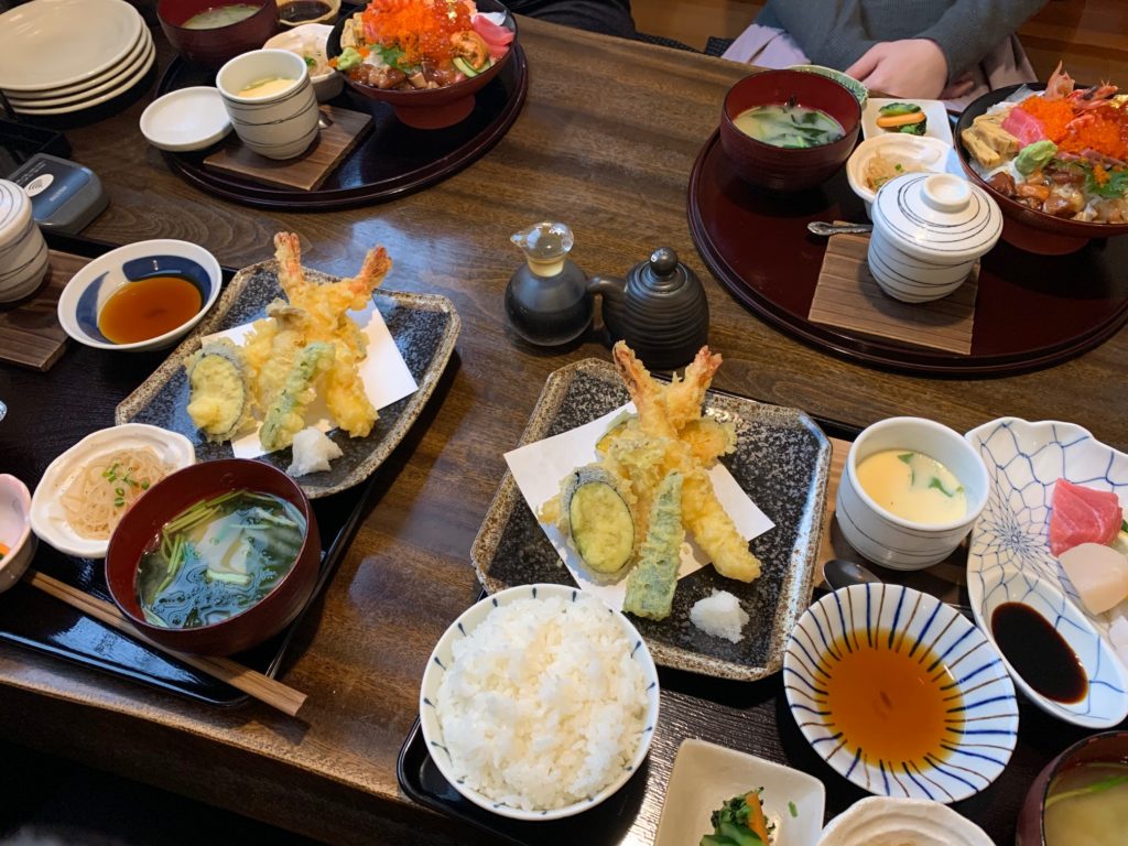 大きな海老の天ぷらと新鮮なお造りにテンション大上がりです♪