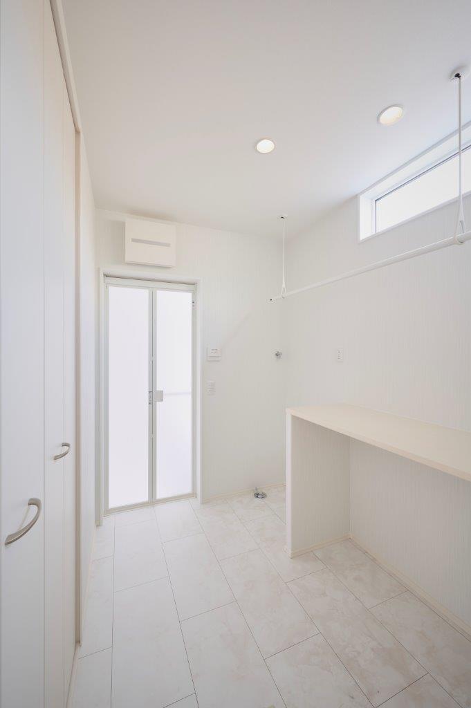 また、花粉やPM2.5のようなアレルギー物質も気になりません。ランドリールームには家事カウンターと収納スペースを設置しているので、乾いた洗濯物をその場でたたんで、収納する作業が一か所で完結出来ます◎