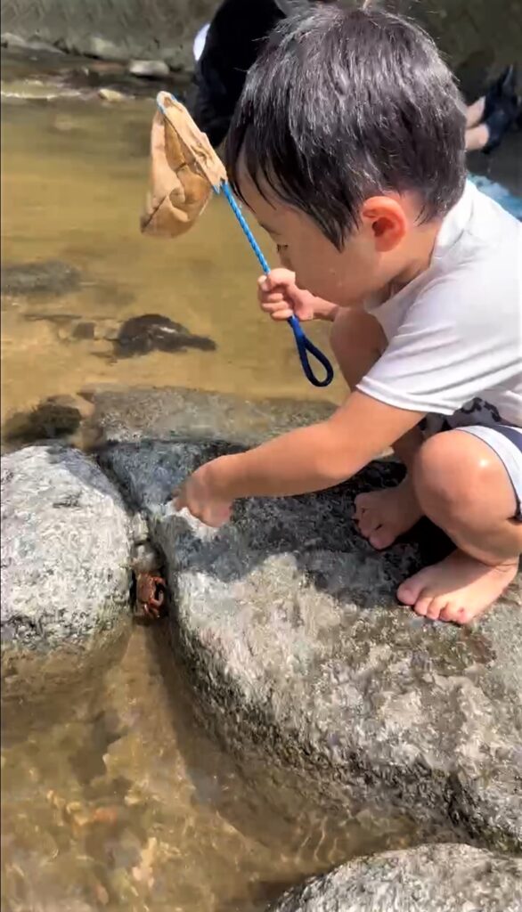川にはカニ🦀がおり子どもたちは大興奮でした。
