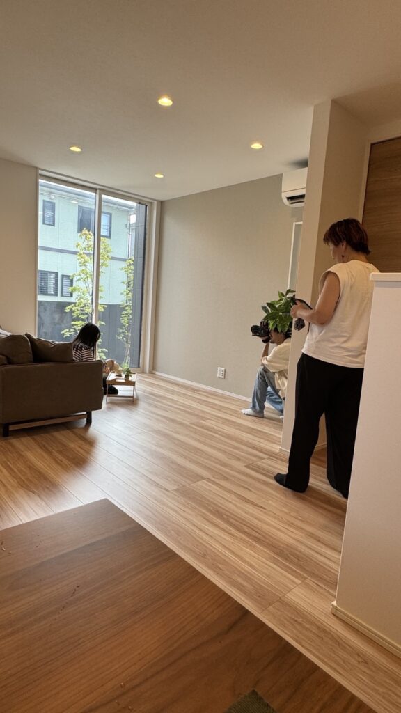 撮影は、ディレクター1名・カメラマン1名・リール担当兼アシスタント1名で行っています。小物などを搬入し1日で2物件の撮影を行います。(いつも引っ越し時のような荷物を持ってきてくださいます。ありがとうございます。)九州八重洲の家の良さを皆さまに知っていただきたく、香盤作成から撮影までご尽力いただきております💪 いつもありがとうございます(^^)