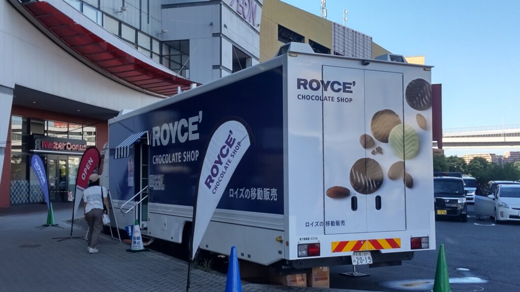 先日、チョコレートショップ、ロイズの移動販売車を発見しました。