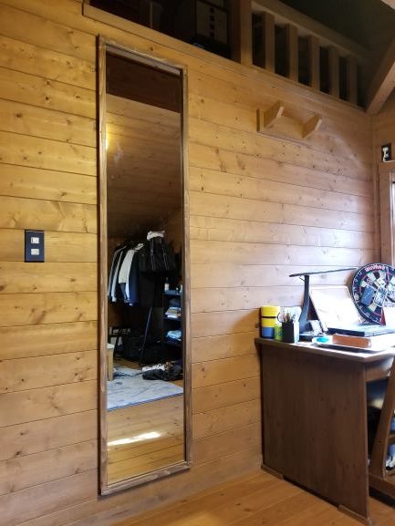 そんな中、先日机の再塗装をした次男くんと部屋に鏡を取り付けました。