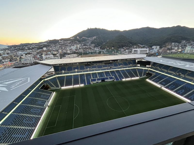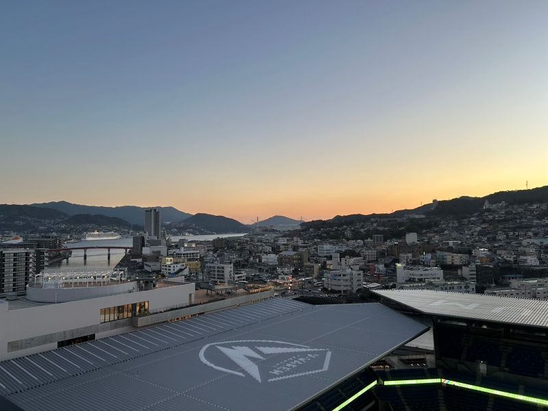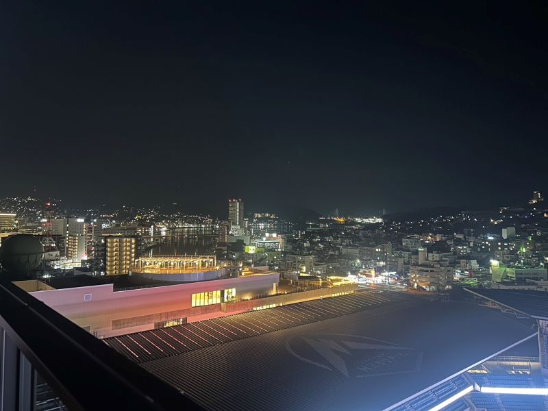 宿泊は、昨年開業したスタジアムシティホテルで、部屋のバルコニーからスタジアムを眺めることができました。
