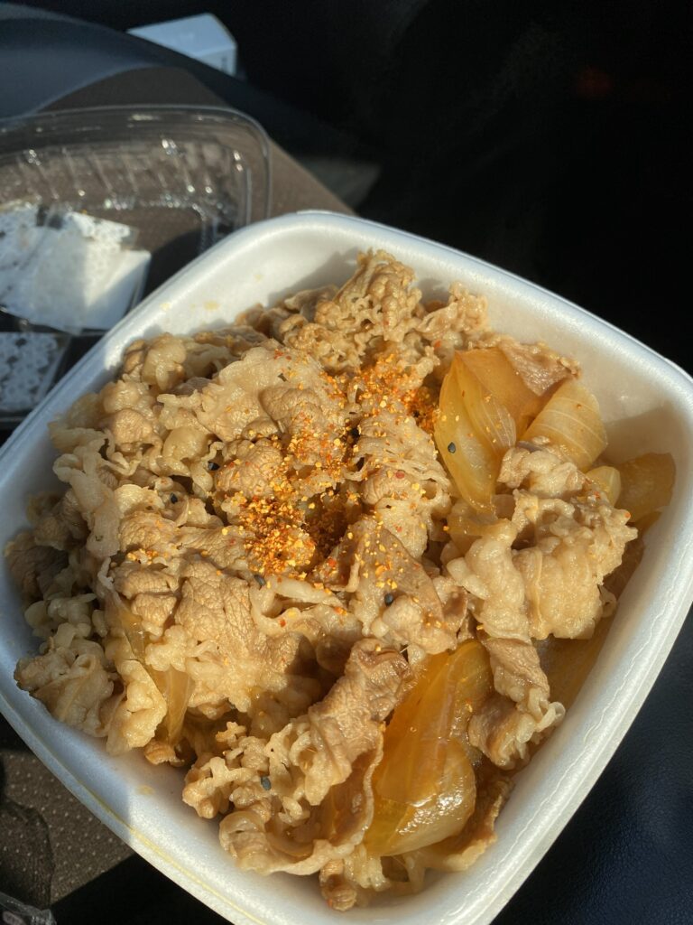 このサイズは、並盛の約2倍の肉量と1.4倍のご飯量を誇り、非常に満腹感を得られるボリュームと聴いてましたので「オラ ワクワクすっぞ!」という気持ちです。