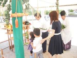 土地の神様を鎮め、土地を利用させてもらうことの許しを得る。