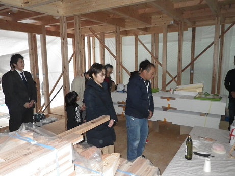 N様ご夫婦と松崎棟梁、現場監督で弊社社員の峰、設計担当の森口、私で