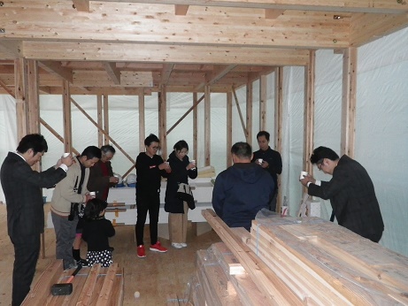次に夕方の上棟式と餅まきの様子をご報告します!