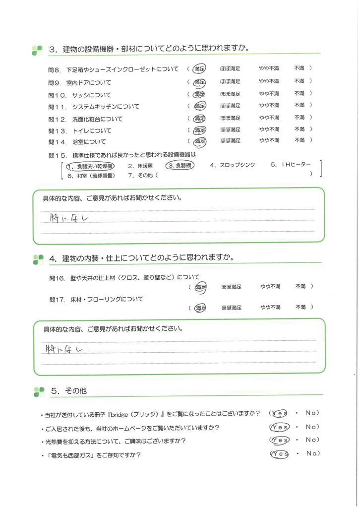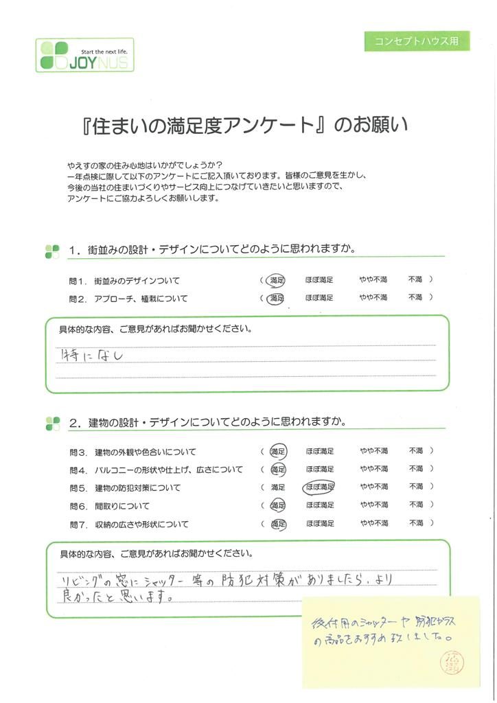 実際に住んでみて1年が経った今、かなり細かなアンケートにお答えいただきました。