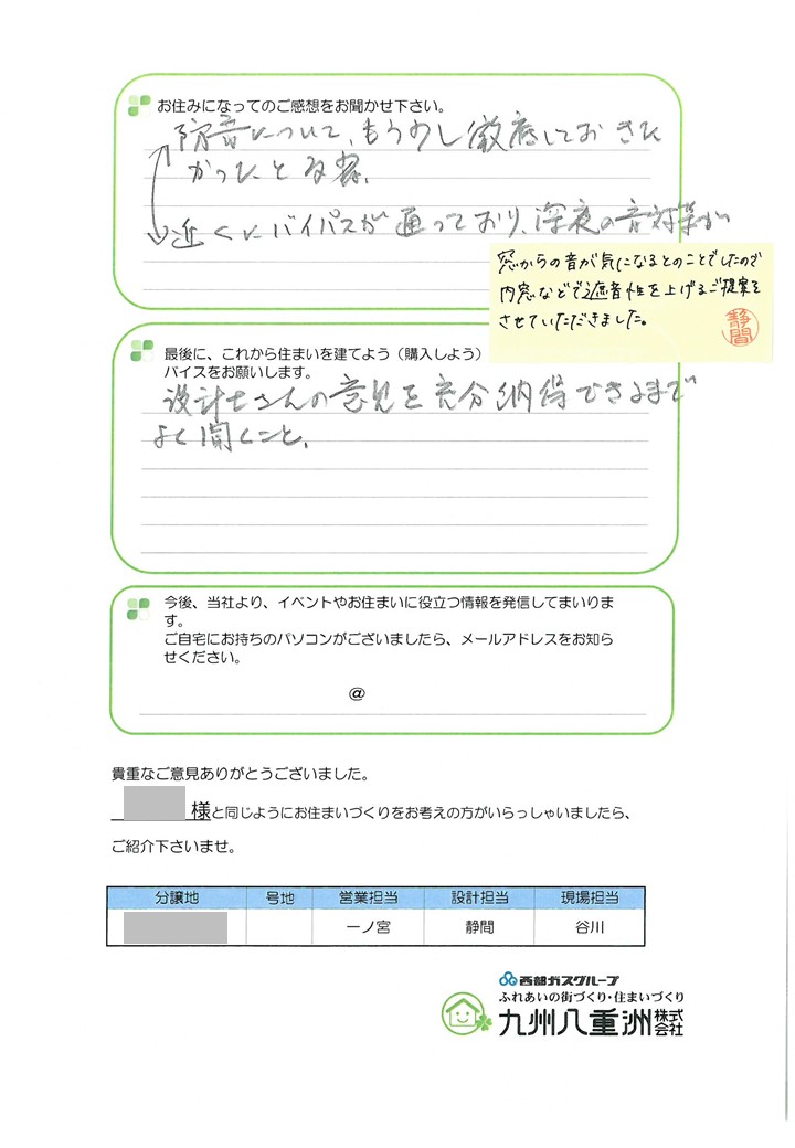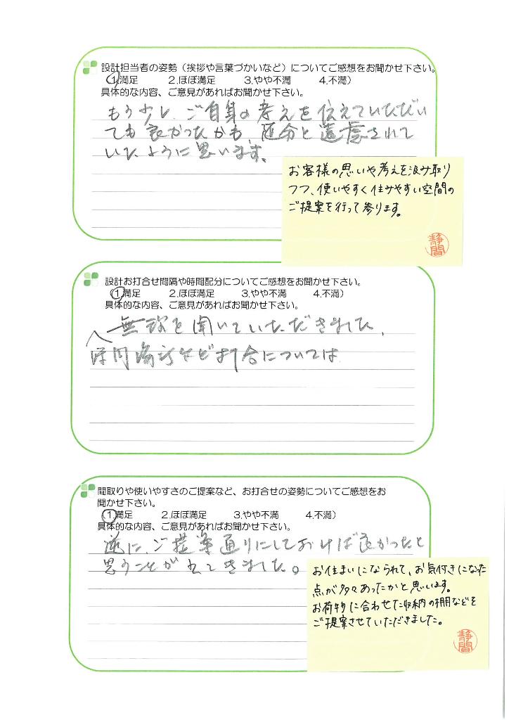 八重洲の家にお住まいのお客様より、アンケートを頂きました。