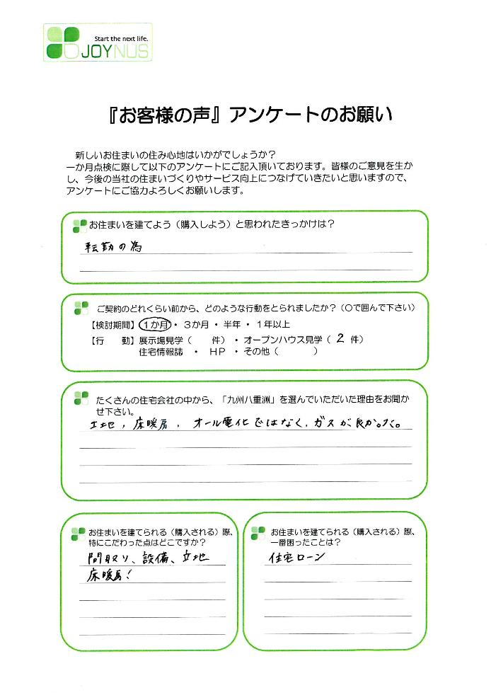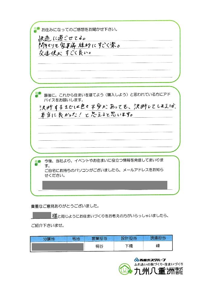 八重洲の家にお住いのお客様より、アンケートを頂きました。