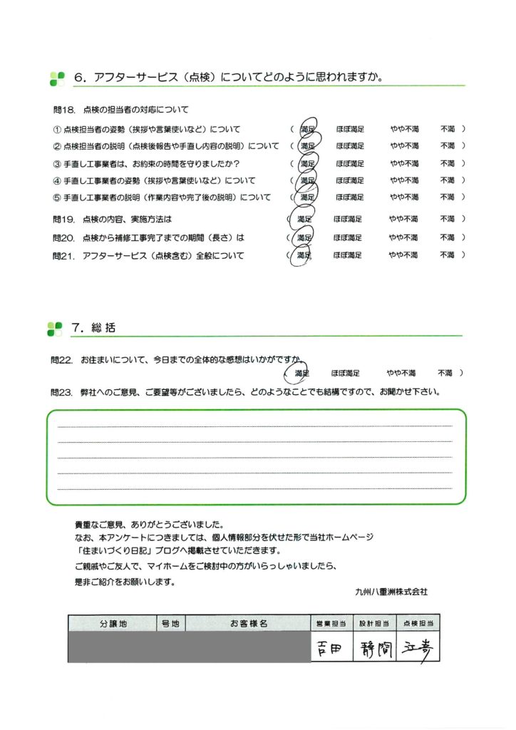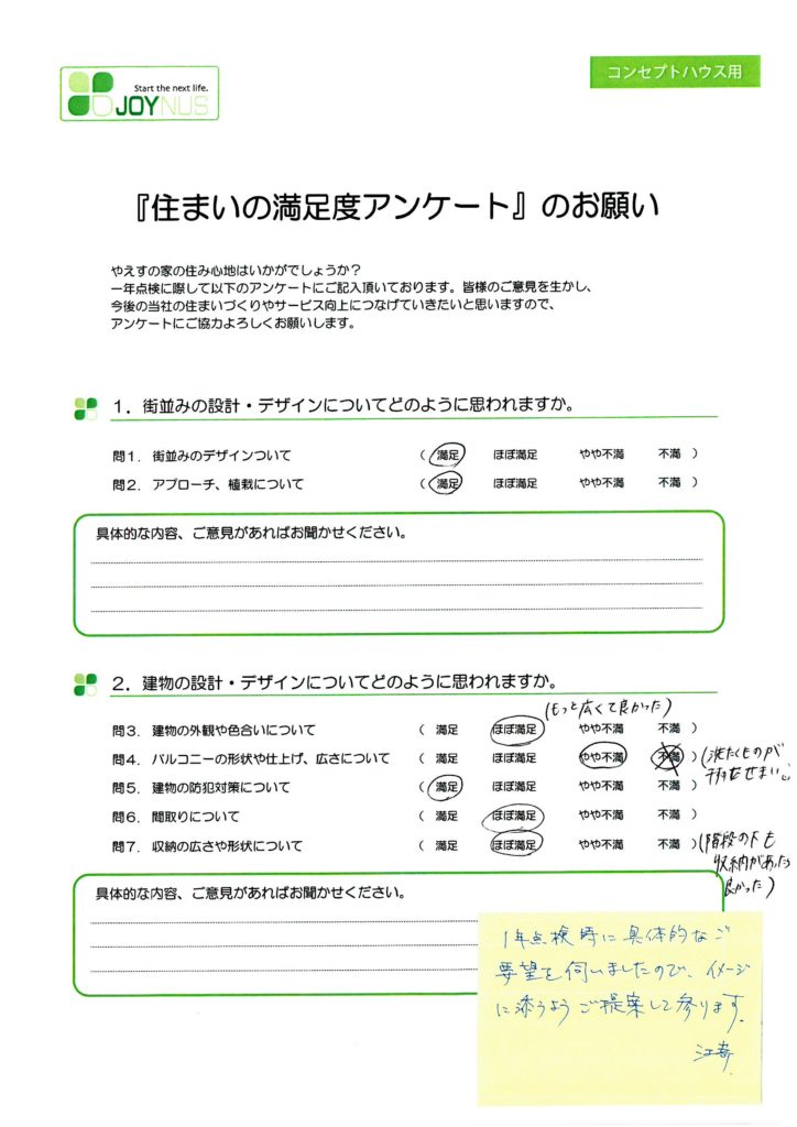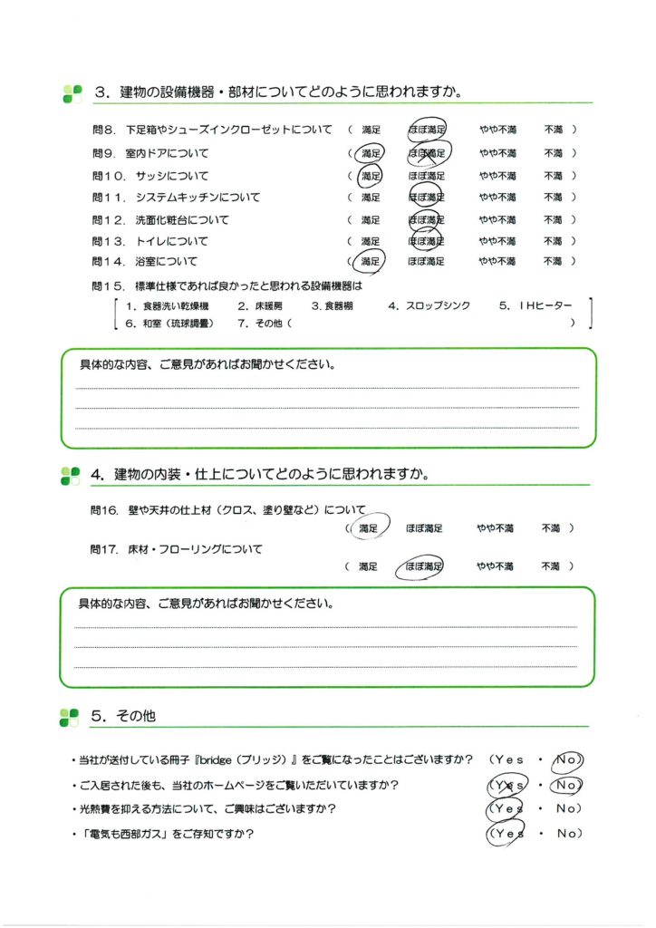 八重洲の家にお住いのお客様より、アンケートを頂きました。