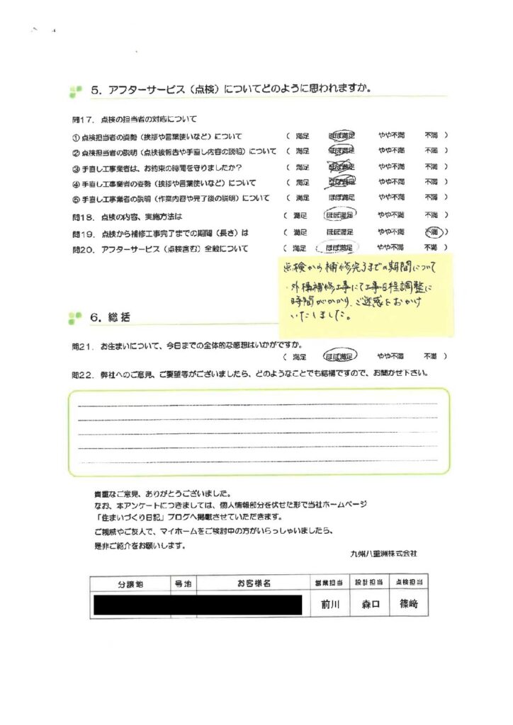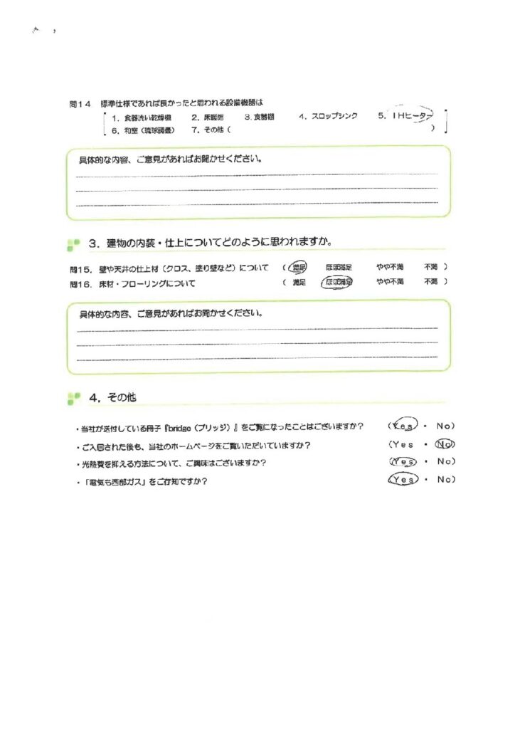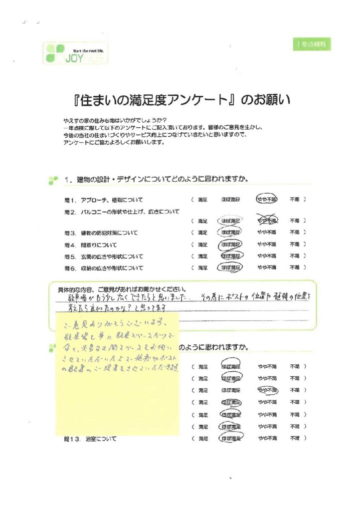 八重洲の家にお住いのお客様より、アンケートを頂きました。