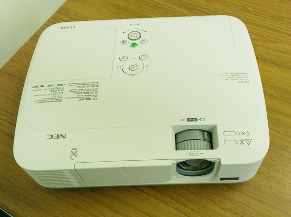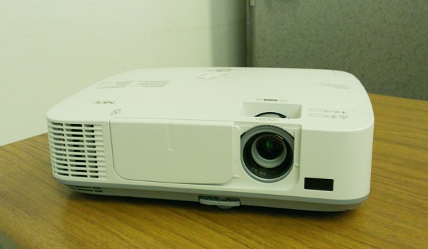 プロジェクターは、有料備品として1日¥16,200でご利用することが出来ます(26年10月現在)