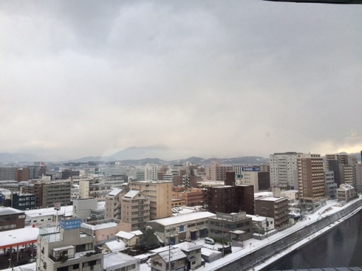 見えにくいですが山にも雪が積もってます。
