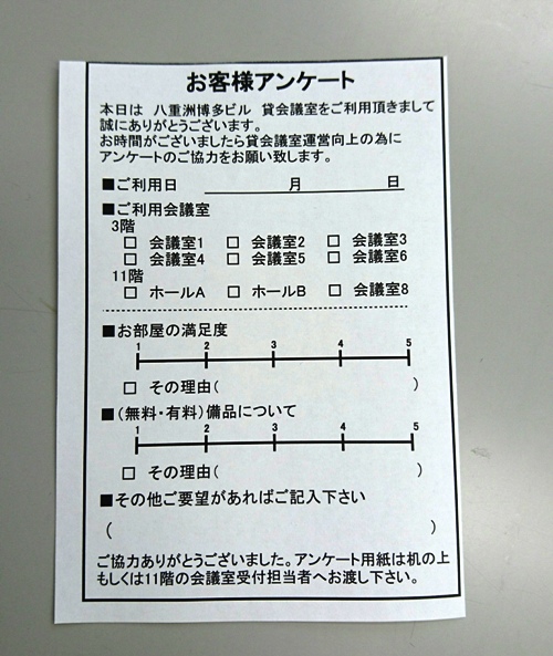 各部屋にアンケート用紙を置いております。