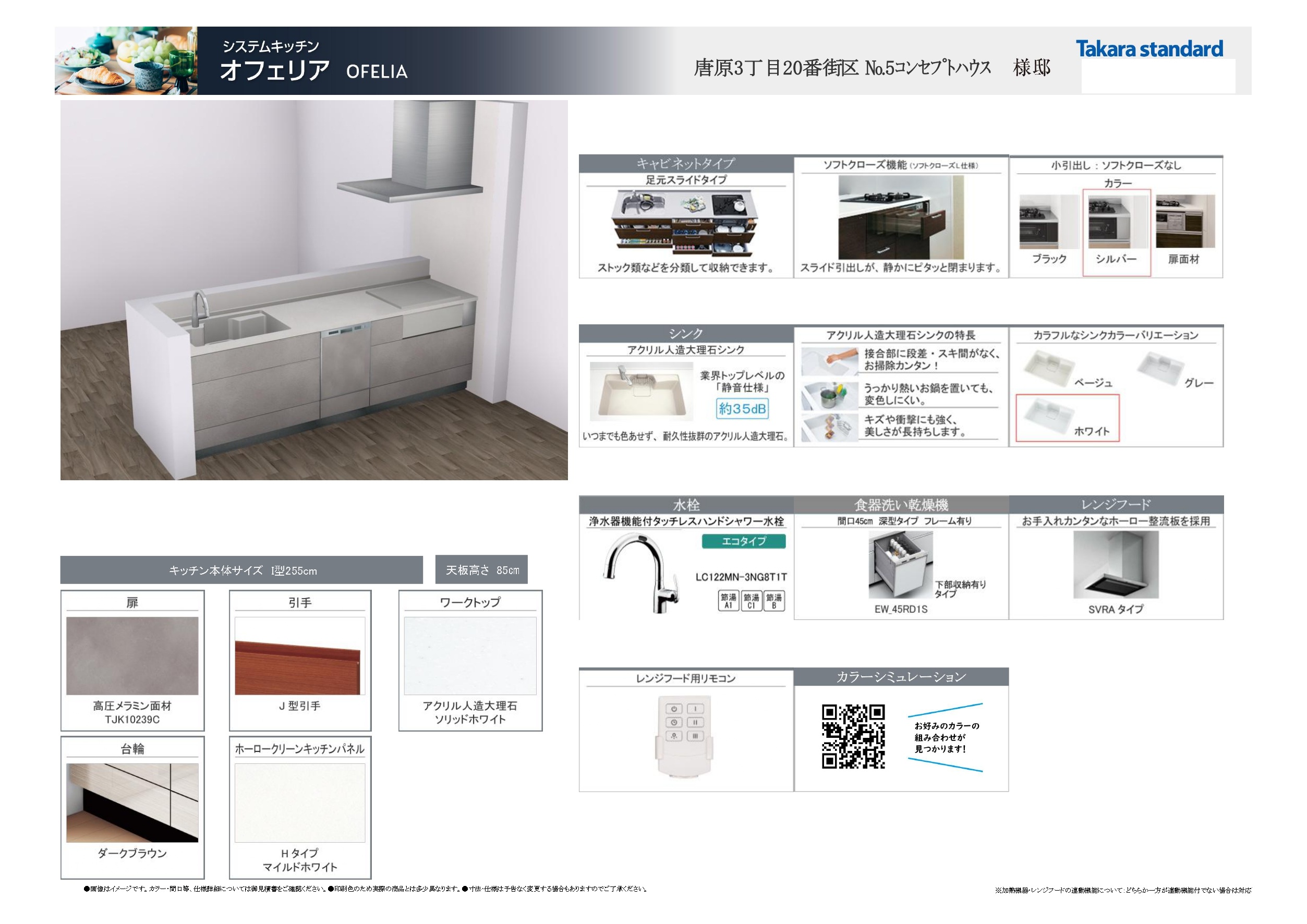 【システムキッチン】(タカラスタンダード:オフェリア)たっぷり入る深型の食洗機に加えて、浄水機能付きのタッチレス水栓を採用。毎日のお料理や後片付けを快適にサポートします。