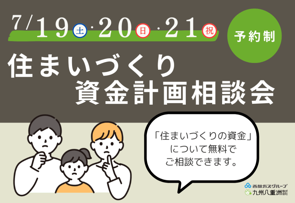 7月19日(土)・20日(日)・21日(月/祝)に 住まいづくりの資金計画相談会を開催いたします。