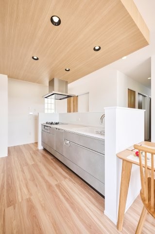 【キッチン】アイランドキッチンを採用。ぐるぐる回れて家事効率アップに繋がります。
