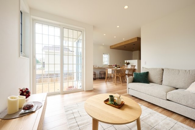 【リビング】リビングには掃き出し窓が2つ付いており、日中は照明要らずの明るさです。